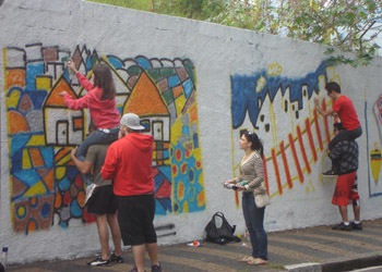Uma das propostas para a 3ª Semana de Comunicação e Marketing era ‘do cinza do esquecimento para o colorido da revitalização’. O evento que contou com palestras, exibições de trabalhos e debates teve como encerramento a grafitagem em 60 metros do muro da antiga Fepasa, em frente a faculdade e a Praça João Milani, graças à parceria entre a Veris e a Empresa Municipal de Desenvolvimento de Campinas (EMDEC).